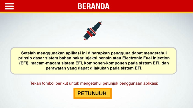 Multimedia Pembelajaran Interaktif Electronic Fuel Injection (EFI) ini merupakan aplikasi media pembelajaran berbasis Android.