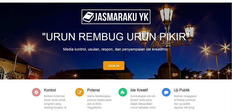 Website media kontrol, usulan, respon, dan penyampaian ide kreatif masyarakat Kota Yogyakarta.